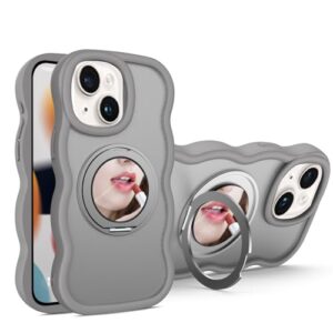 Kanyaku Iphone15用の ケース magsafe対応 超強磁力 TPU 韓国 可愛い ウェーブ ソフト 滑り止め 鏡付き 耐衝撃 半透明 マット感 おしゃれ スマホケース アイフォン 15 用 ケース 360°回転スタンド 縦横両対応 スマホケース iphone 15 用 マグセーフ リング マグネット搭載 (360JZ-15-hui)