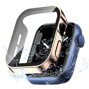 TEMEDO 対応 Apple Watch ケース 44mm 3D直角エッジデザイン アップルウォッチ カバー メッキ加工 PC素材 防水ケース Apple Watch カバー 全面保護 二重構造 アップルウォッチ ケース ガラスフィルム 一体型 Apple Watch se 第二世代/se/6/5/4 アップルウォッチse 第二世代/se/6/5/4 対応(44mm,防水のローズゴールド)
