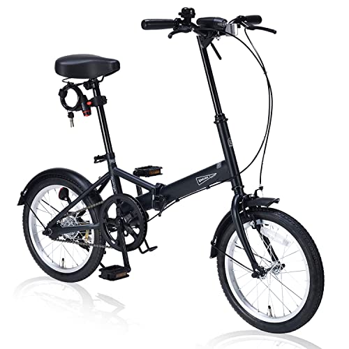 MYPALLAS折畳自転車16インチは、シングルギアでコンパクトなデザイン。LEDライトやワイヤーロック付、マット調の3色カラーから選べます。プレゼントや景品に最適なモデルです。