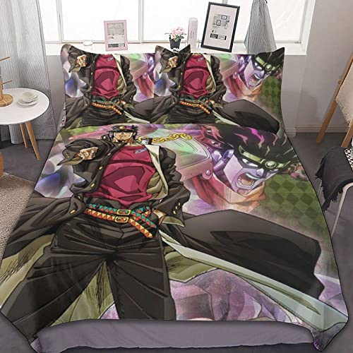 ジョジョの奇妙な冒険の布団カバー3点セットは、シングルサイズで寝具カバー、掛け布団カバー、ボックスシーツ、枕カバーが含まれています。洋式と和式両方に対応、ダニ防止機能付きで、速乾性があるため洗い替えも簡単です。サイズは86インチx70インチ。