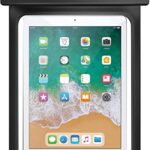EnocoLandの防水タブレットケースは、12インチまで対応し、IPX8等級で30mの防水性能を持っています。首掛けストラップ付きで、お風呂などの水場でも安心して使用できます。カラーはブラックです。