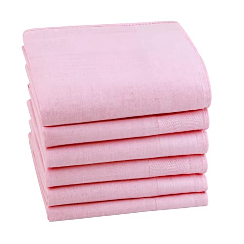 HOULIFE メンズ コットンハンカチは100%ソフトコットン製で、サイズは15.7インチ×15.7インチ。無地デザインで、男女兼用のピンク6枚セット。