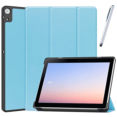 docomo dtab d-51C専用ケース。10.1インチ、3つ折りデザイン、PUレザー製。タッチペンとフィルム2枚付。オートスリープ機能、内蔵マグネットで薄型・軽量。シンプルでおしゃれなタブレットカバー。