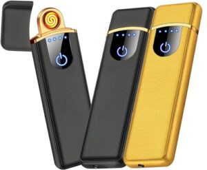 Anfurt 電子ライター usb ライター 小型 充電式 ガスオイル不要 防風 軽量 薄型 点火用 プレゼント 電子ターボライター 防風 アーク スリム アウトドア バーベキューお墓参り 防災グッズ (ブラック&ゴールド 各1個ずつ)