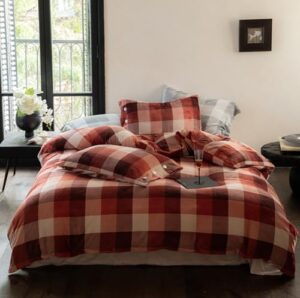 Blazez 布団カバー シングル 3点セット セミダブル ダブル 4点セット 厚手 フリース 保温 レトロチェック柄 掛け布団カバー 枕カバー シーツ 洗える 秋冬 寝室 ベッドカバー 寝具セット (セミダブル,レッド)