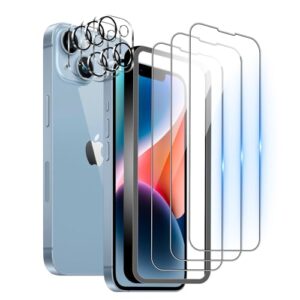 対応 iPhone 14/アイフォン14 ガラスフィルム 【3* 薄型 強化ガラス + 3* レンズ保護フィルム+ 1*ガイド枠付き】指紋防止 国産旭硝子材質高透過率 高光沢 い 9H硬度超薄型 気泡なし簡単貼り付け ラウンドエッジ加工