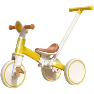 BTMの子供用三輪車は折りたたみ式で扱いやすい。3歳まで使用可能で、安全ベルトや手押し棒付き。座面回転・ハンドル調整機能で成長に合わせて使える。誕生日プレゼントにも最適。