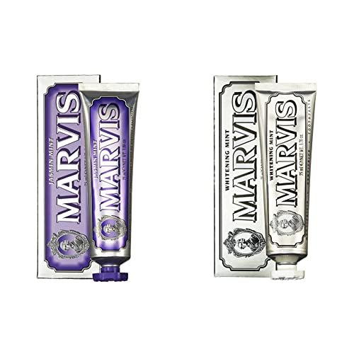MARVISホワイト・ミント歯磨き粉(75ml)は爽やかなミントの風味で、きれいな白い歯をサポート。ジャスミン・ミント(75ml)は華やかな香りのオーラルケア。イタリア製で毎日の歯磨きを特別にする製品です。