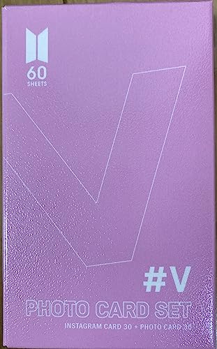Vグッズのフォトカードセット60枚入り。各カードにはテテの魅力的な写真が収められており、コレクターに最適。サイズやデザインは多様で、ファン必見のアイテムです。