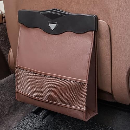 DEWELの車用ゴミ箱は、スリムで折り畳み式。PUレザー製で、LEDライトやマグネット付き。助手席や後部座席に対応し、コンパクトに収納可能。防水で倒れない設計。省スペースで小物入れにも最適。ブラウンのカラー。