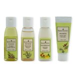 アーユルヴェーダ ヘアケア ピッタお試しセット。インドサロンのトライアル用シャンプー、コンディショナー、リンスが含まれ、旅行にも最適です。髪の健康を促進し、潤いを与えます。