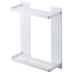 山崎実業の2段マグネットバスルームラックは、約W30×D11×H35.5cmのサイズで、ホワイトカラー。浴室収納に便利で、フック付きで使いやすいデザインです。