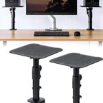 サンワダイレクトのスピーカースタンドは、高さ29~40cmで角度調整が可能。天板サイズは23×23cm、耐荷重は10kg。卓上クランプタイプで場所を選ばず使えます。