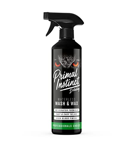 Primal Instinct 無水洗浄&ワックスカークリーナースプレーは、500mlの製品で、水を使わずに車を洗浄・保護し、ショールームの輝き仕上げを実現します。