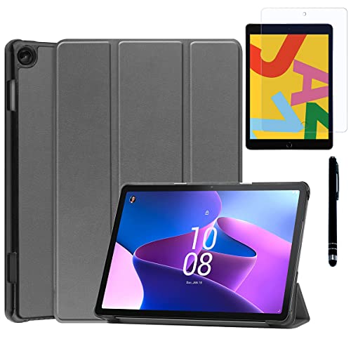Lenovo Tab M10 (3nd Gen)及びLAVIE Tab T10 PC-T1055EAS / T10dに対応した手帳型カバー。タッチペンと専用フィルム2枚付きで、シンプルかつ軽量なデザイン。薄型(T0402-gray)。