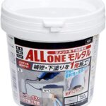 アサヒペン セメント系下地調整材 オールワンモルタルは、強力な接着力を持つグレーのモルタルです。750g入りが2缶で、クラック補修や下地の平滑化に最適です。簡単に施工でき、仕上がりが美しいのが特徴です。