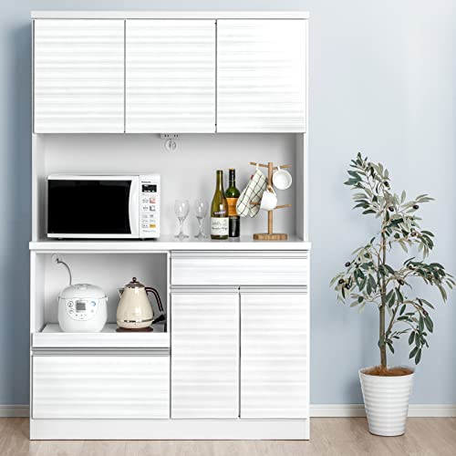 タンスのゲン キッチンボード 国産 幅120 大川家具 完成品 食器棚 レンジ台 キッチン収納 引き出し付き MOISS 木目調 ホワイトウッド 33010167 20(83952)【超大型商品】 高価買取中