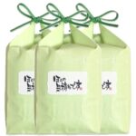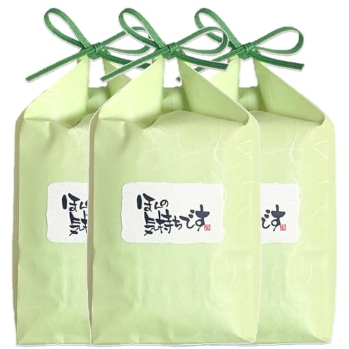 3合米×3個、令和7年産山形県産はえぬき450gをグリーン紙袋に入れました。引っ越しやリフォームのプレゼントに最適で、おしゃれなギフトです。