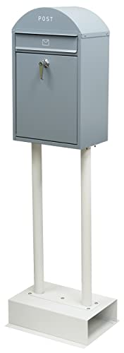 MOJYU スタンドポスト Geremiaは、ブルーグレーとホワイトのカラーで、北欧風のおしゃれなデザイン。鍵付きで安心な郵便受け。自立型のハイタイプで、家庭用玄関に最適。