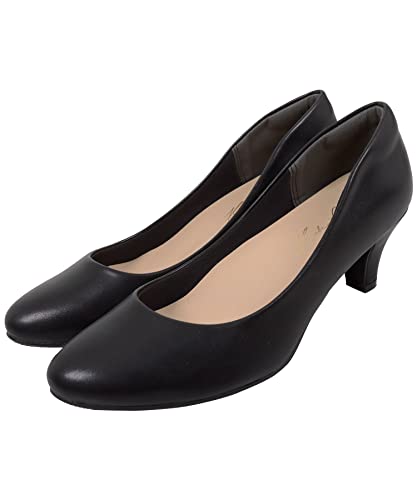 神戸レタスのパンプスは、痛くない履き心地で、走れる歩きやすさが特徴。就活や通勤、仕事に最適なラウンドトゥデザインで、5cmヒールのXXSサイズ、スムースブラックカラーです。