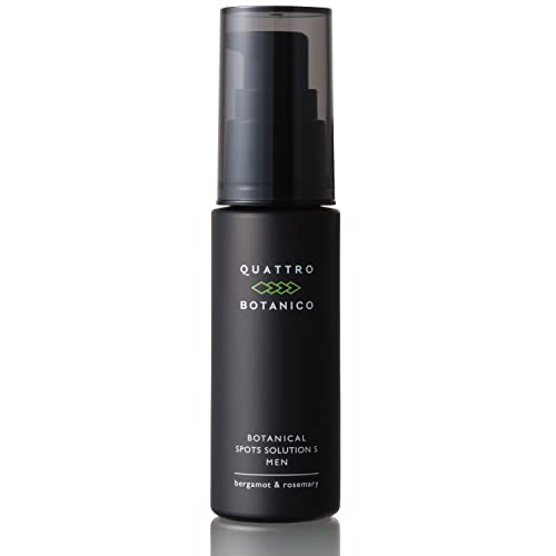クワトロボタニコ シミ美容液 メンズ用20ml。コウジ酸配合の医薬部外品で、シミ対策・ケアに最適。ポンプ式で使いやすく、保湿効果もあり、日焼け対策にぴったりな乳液タイプのスキンケア製品。