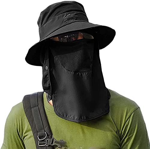 フィッシングハットは、UVカット機能付きで日焼け防止効果があります。メッシュ素材で通気性に優れ、3WAYで使える折りたたみ式が便利。釣り、登山、ガーデニングに最適です。カラー: ブラック。