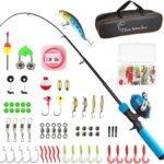 Cadiganの子供用釣りセットは、1.5メートルの伸縮式釣竿、スピニングリール、釣り餌、釣り糸、収納バッグが付属。初心者向けの日本語説明書もあり、楽しい釣り体験をサポートします。