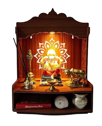 DIVOKAH® 美しい木製プージャマンディールは、ホームやオフィス用の寺院です。8mm合板製で、プジャスタンドやLEDスポットライト付き。