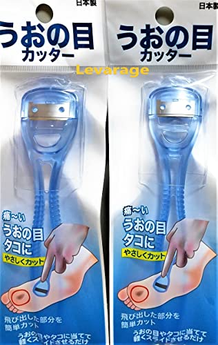2個セットのうおの目カッターは、魚の目やタコの除去に特化した商品です。使いやすいデザインで、手軽に足のケアができます。4902186000521の品番が付いています。