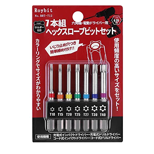 XMSSAAのトルクスネジ用ビットセットは、65mmの長さで片頭トルクス仕様。六角軸6.35mmの磁気ドライバービットがT10-T40まで含まれた7本組です。耐久性があり、さまざまな作業に最適。