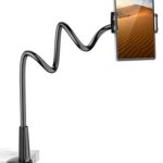 76CMのタブレット・スマホ両用スタンド。寝ながら使用可能で全機種対応。強化土台とフレキシブルアームで安定性抜群。360度回転し、4-10.6インチのデバイスや手帳型ケースにも対応。