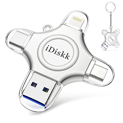 APPLE Mfi認証済 4in1 iPhone15対応 iDiskk iPhone usbメモリ 512GB【Lightning+USB+Type-C+Microコネクタ搭載】外付けフラッシュドライブ 外部ストレージ 携帯のスペース拡張 アイフォンデータ保存 プラグ&プレイ ワンクリック自動バックアップ iPhone iPad シリーズ/Mac/Android(OTG Type-C)/PC対応 高価買取中