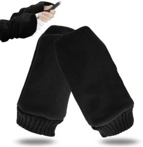 [FINGER TEN] ゴルフグローブ 防寒用手袋 フリース 柔らか 裏起毛 保温 ミトンハンドウォーマー 両手用 メンズ レディース アウトドア 暖かい 冬ゴルフ寒さ対策 ((ブラック)ノーロゴ, L)