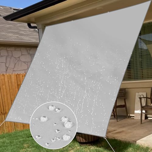 XiaZ 雨よけ 日除けシェード オーニング ベランダ 目隠し撥水 シェード 防水サンシェード 紫外線UVカット 400Dポリエステル 強度UP 2層撥水PU塗装 接合部水漏れ防止加工 クールシェード 庭用タープ 遮熱 断熱 屋外・庭先・ベランダ用 ・廊下・庭下・デッキ ・プール ・ パーゴラ・ カーポート・ キャンプ ・野外活動 簡単設置 固定ロープ 付属 (ライトグレー, 2×3M)