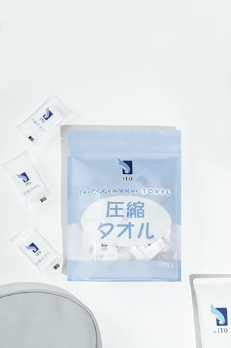 圧縮タオルITOフェイスタオルNEWは、1袋22個入りの使い捨てタオルです。美容や洗顔、メイク落としに便利。携帯しやすく、旅行や出張、アウトドアにも最適。個包装で防災用にも保存可能。