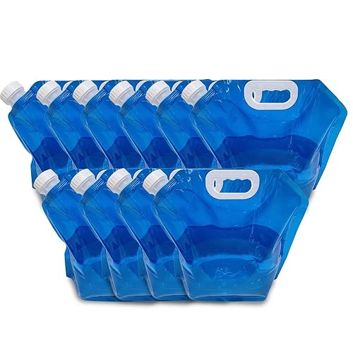 PCATECの携帯用ウォーターバッグは、10L容量の折りたたみ水タンクを10個(ブルー5個&クリア5個)セット。災害時やキャンプに最適な収納便利な給水袋です。