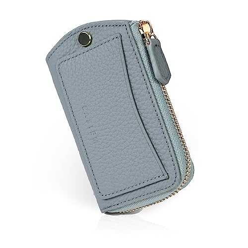 LASIEM(ラシエム)のキーケースは、本革レザーを使用し、スマートキーに対応。外ポケット付きで便利なデザイン。カラーはブルーグレー×グレージュで、レディース・メンズ両方に最適。