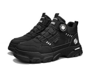 ライディングブーツ メンズ 厚底 ライダーシューズ バイクブーツ ハイカット プロテクション付き 革靴風 バイク用シューズ 通気性 耐滑 耐摩耗 ダイヤルロック アウトドア 春夏秋兼用 スタイリッシュ 通勤 通学 25cm ブラック
