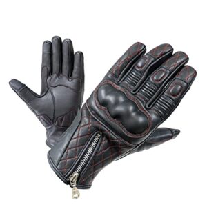 モトベース(MOTO BASE)春秋モデル バイク用 スマホ対応 プロテクション キルト レザーグローブ/MBLG-01(ブラック/レッド) L