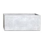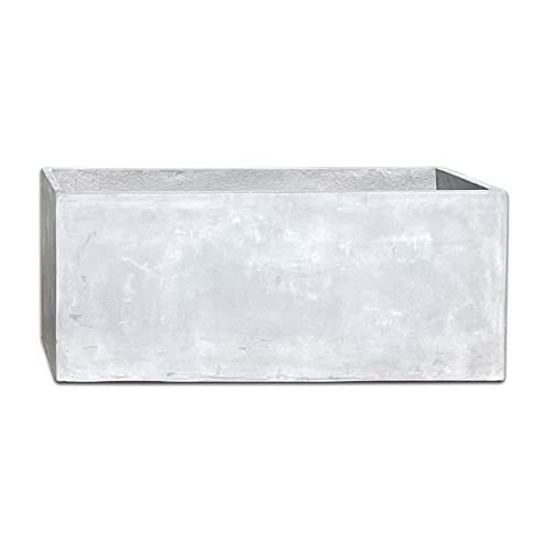 ファイバークレイ製の大型プランター。サイズは幅80cm、奥行32cm、高さ32cm。屋内外のガーデニングに適し、コンクリート風のデザインが特徴。軽量で持ち運びも簡単。