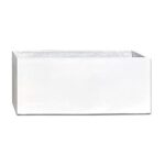 ファイバークレイ製の大型プランター。サイズは幅80cm、奥行32cm、高さ32cmで、屋外・屋内両方に適したデザイン。キューブ型で、コンクリートやセメントの風合いが特徴。ガーデニングに最適なホワイトカラー。