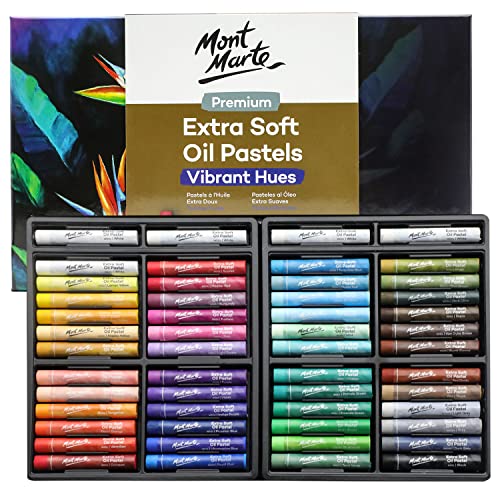 Mont Marte スーパーソフトオイルパステル52点セットは、鮮やかな色合いでクリームのような柔らかさを持ち、ブレンドや層状着色に最適です。アート、工芸、デッサンに幅広く活用できます。