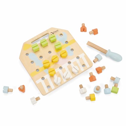 Classic Worldのスクリューボードは、大工さんごっこが楽しめる木製おもちゃです。ネジやねじ回しを使って、3歳以上の子供に知育効果が期待できる遊びを提供します。出産祝い、誕生日プレゼントにも最適です。