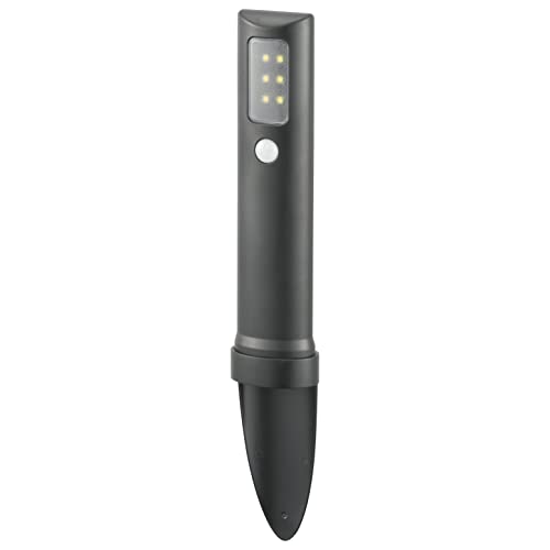 オーム電機のLEDガーデンライトは、土にさして使用でき、明暗センサーと人感センサーを搭載。80ルーメンの明るさで、自動点灯しエクステリアとして庭を照らします。型番はLS-B80GS-3です。