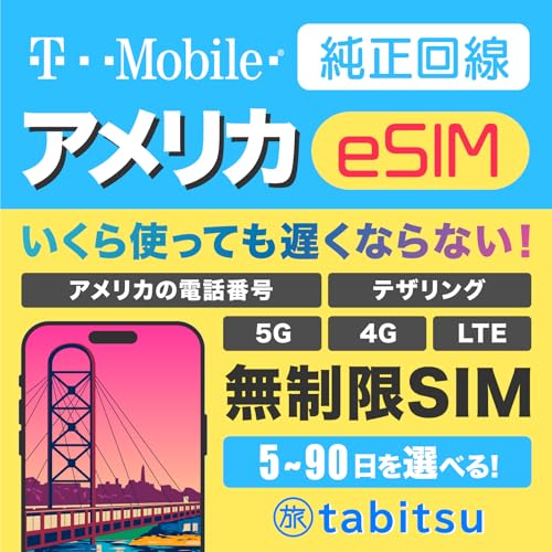 【T-Mobile純正品】アメリカ・ハワイ用eSIM。15日間の無制限データ使用、電話番号付き。5G/4G-LTE対応、高速通信・通話・SMS・テザリング可能なプリペイドSIMカード。
