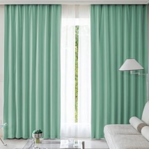 curtain-fabfun 1級遮光 完全遮光 遮熱 遮音 形状記憶 カーテン 2枚セット [幅100x丈220㎝ 2枚組 グリーン ME614]
