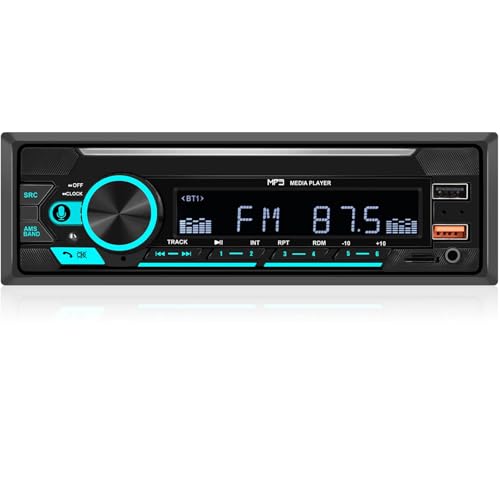 シングルDINカーステレオ。Bluetooth、FMラジオ、MP3再生、USB充電、AUX、TF入力対応。コンパクトなデザインで簡単に音楽を楽しめます。