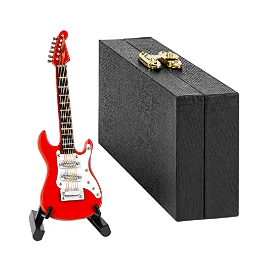 Musiinのミニギターは10cmのエレキギターで、スタンドとケース付き。ホームスタジオやデスクの装飾に最適。ギター愛好家にぴったりのレッドモデル。