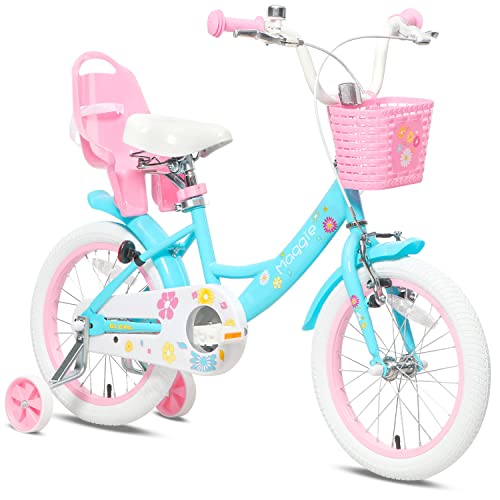 Glerc Maggie 子供用自転車は、4~7歳向けの16インチバイク。花柄デザインで、かごと補助輪付き。幼児の乗り練習に最適で、ぬいぐるみ座席も魅力。カラーはブルー&ピンク。