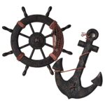 木製の舵輪と錨のセットは、アンティークな海賊スタイルのインテリアに最適。お洒落な船のオブジェとして、レトロな雰囲気を演出します。ガーデニングや店舗用看板にもぴったり。ハワイ風のビンテージアパレルにも合います。
